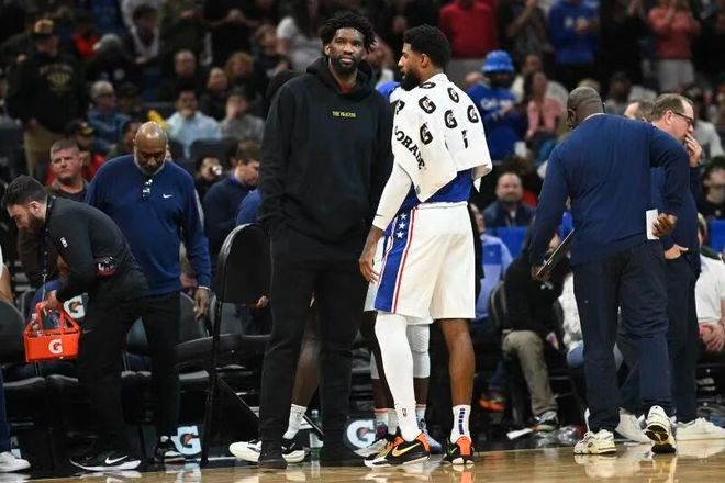 这对年薪合计1.07亿的“亿元组合”,本赛季一场没合体过,却把球队薪资锁死、把马克西逼成铁人——场均跑动4.51公里联盟第一,出战647分钟全联盟最多,肩膀带伤还要扛着球队前行,难怪球迷怒喊:“恩比德乔治不如直接退役!”