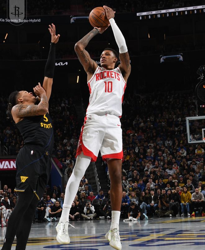 这场比赛火箭队是多人缺席,核心轮换里伊森、杜兰特、亚当斯都无法登场,芬尼-史密斯、范弗利特一直高挂免战牌,所以这场比赛勇士的防守策略就是针对申京,申京作为攻防+组织核心被追梦顶防被多人夹击,首节他7中2+三分3中0只拿4分表现很差,好在谢泼德首节11分打开局面让分差没被拉开。