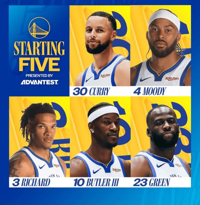 首发阵容方面,火箭队这边,范弗利特继续缺战,杜兰特因个人家庭事务也缺阵,乌度卡教练排出的首发五人组为:阿门-汤普森、里德-谢泼德、约什-奥科吉、贾巴里-史密斯和阿尔佩伦-申京;勇士队这边,格林迎来复出,首发阵容则为:库里、穆迪、理查德、巴特勒、追梦格林。